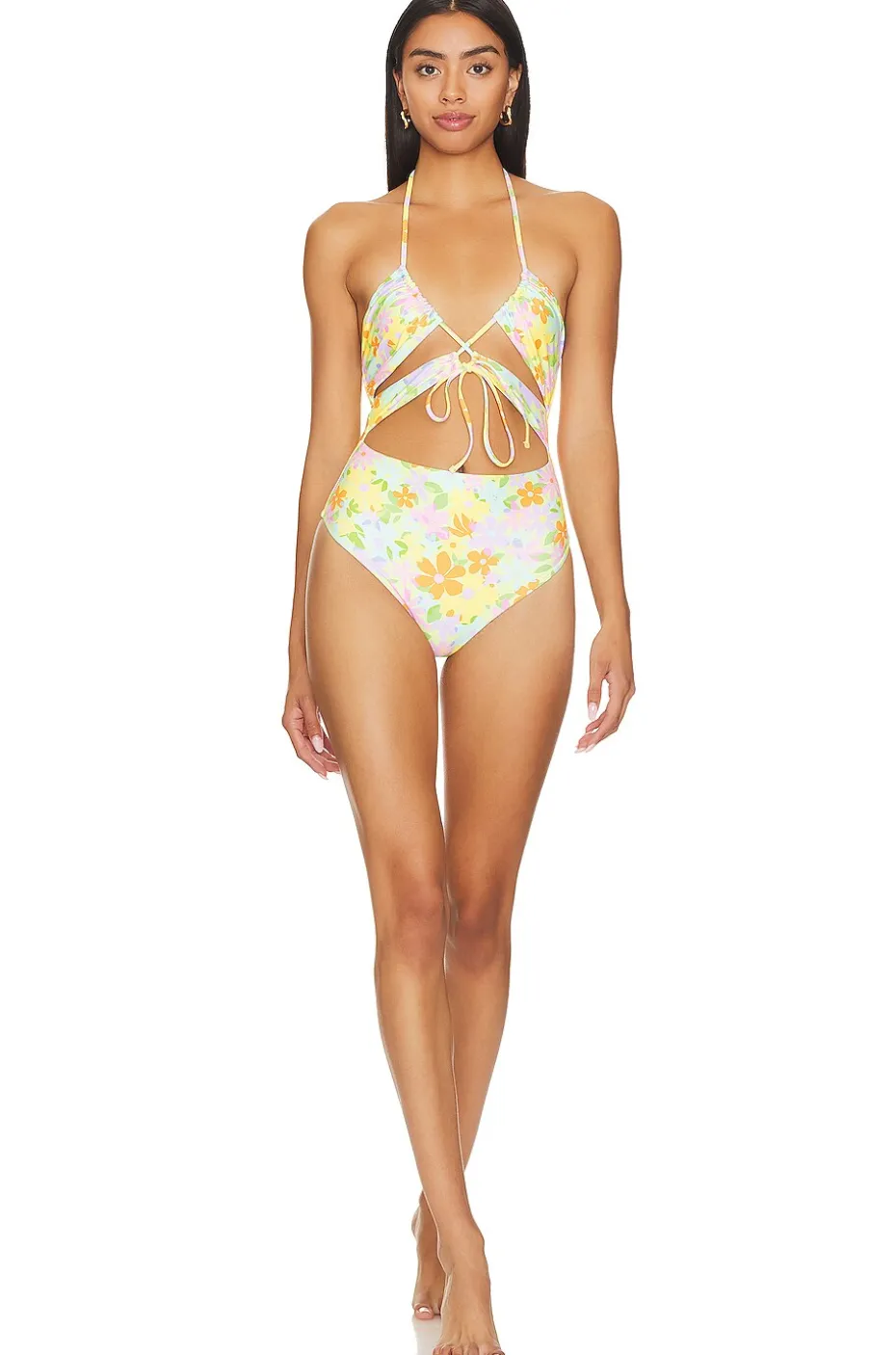 - Halterneck styling with tie closure