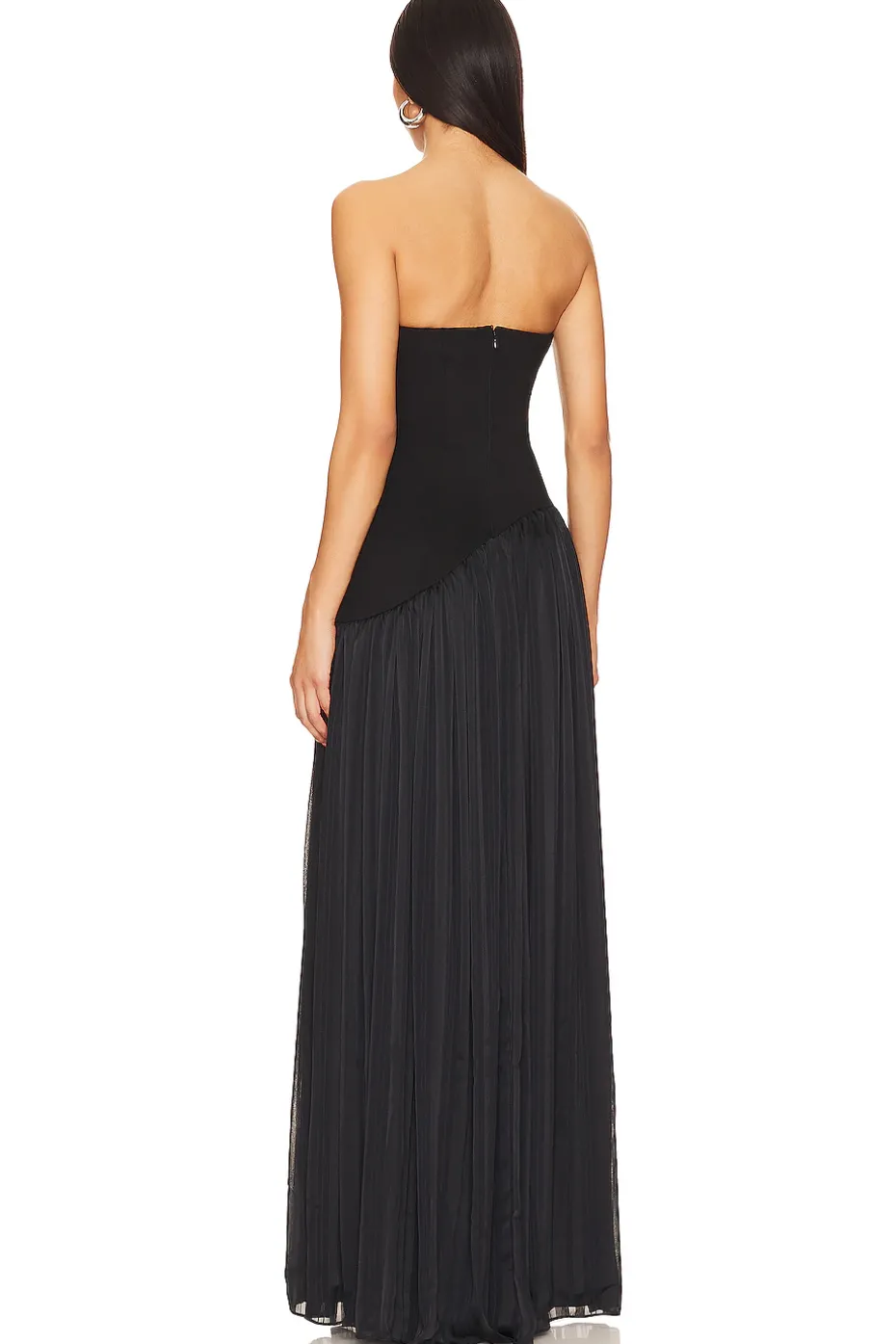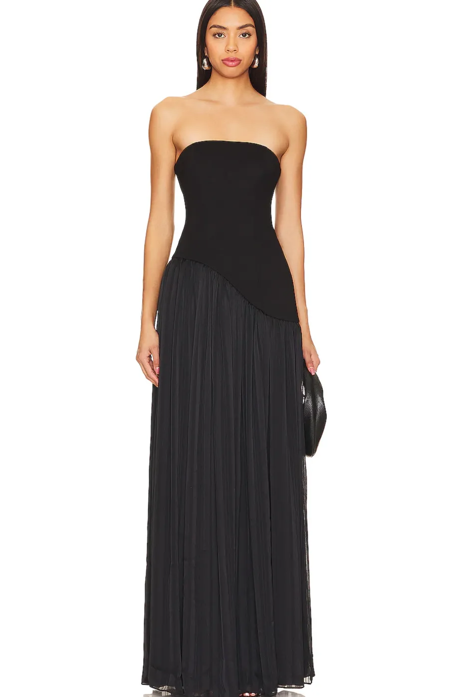 - Step into the spotlight with the Alice Strapless Gown from Lovers and Friends – where sophistication meets sassy in the perfect harmony of black allure! This showstopper isn’t just a dress; it’s an invitation to any night out to be remembered. The strapless design ensures a seamless, elegant look, while the subtly flounced hem adds a touch of playfulness to your every step.