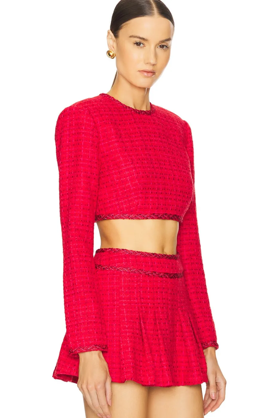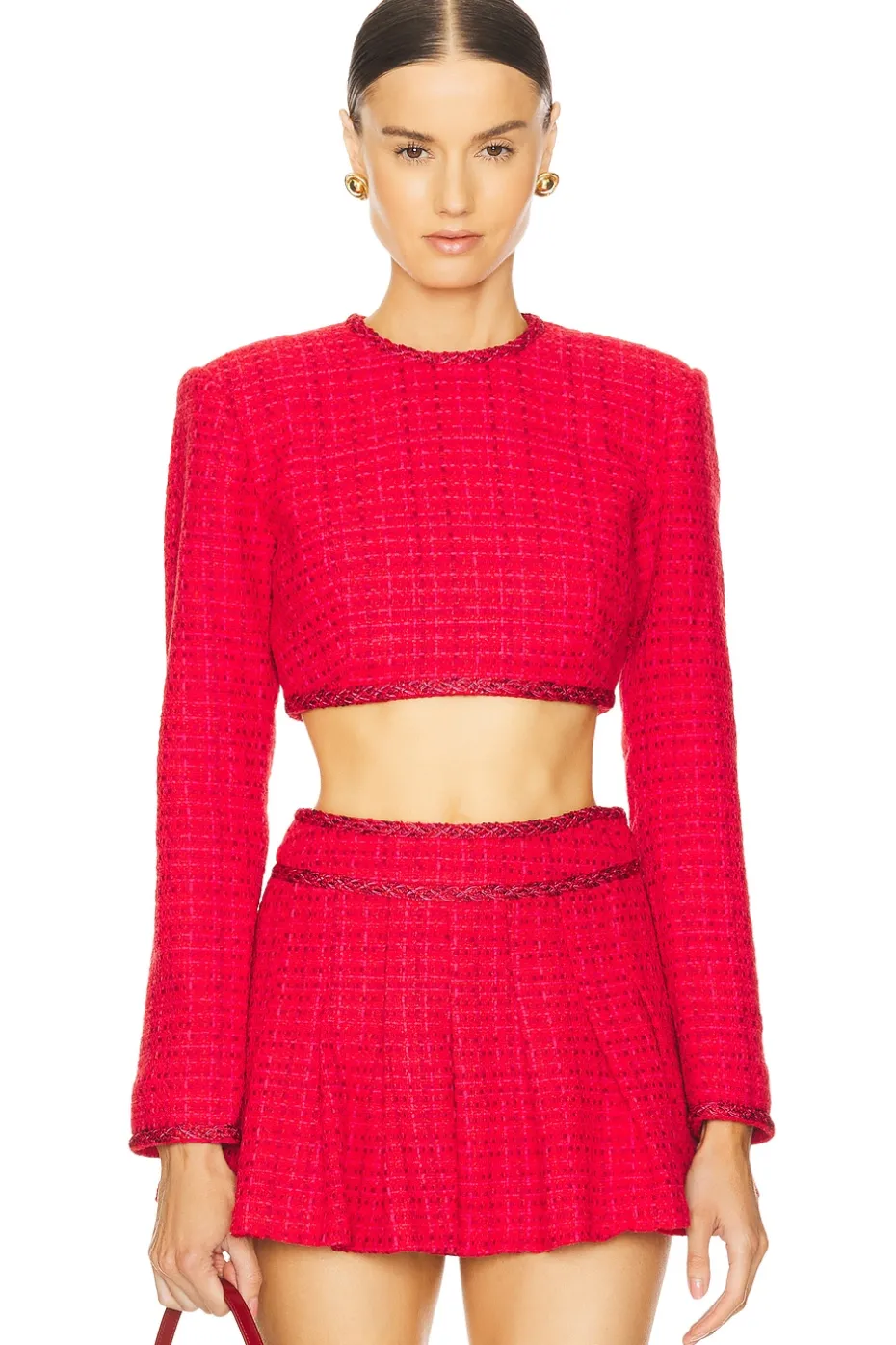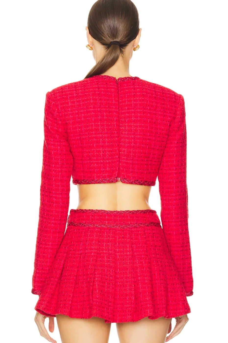 - Tweed fabric with padded shoulders