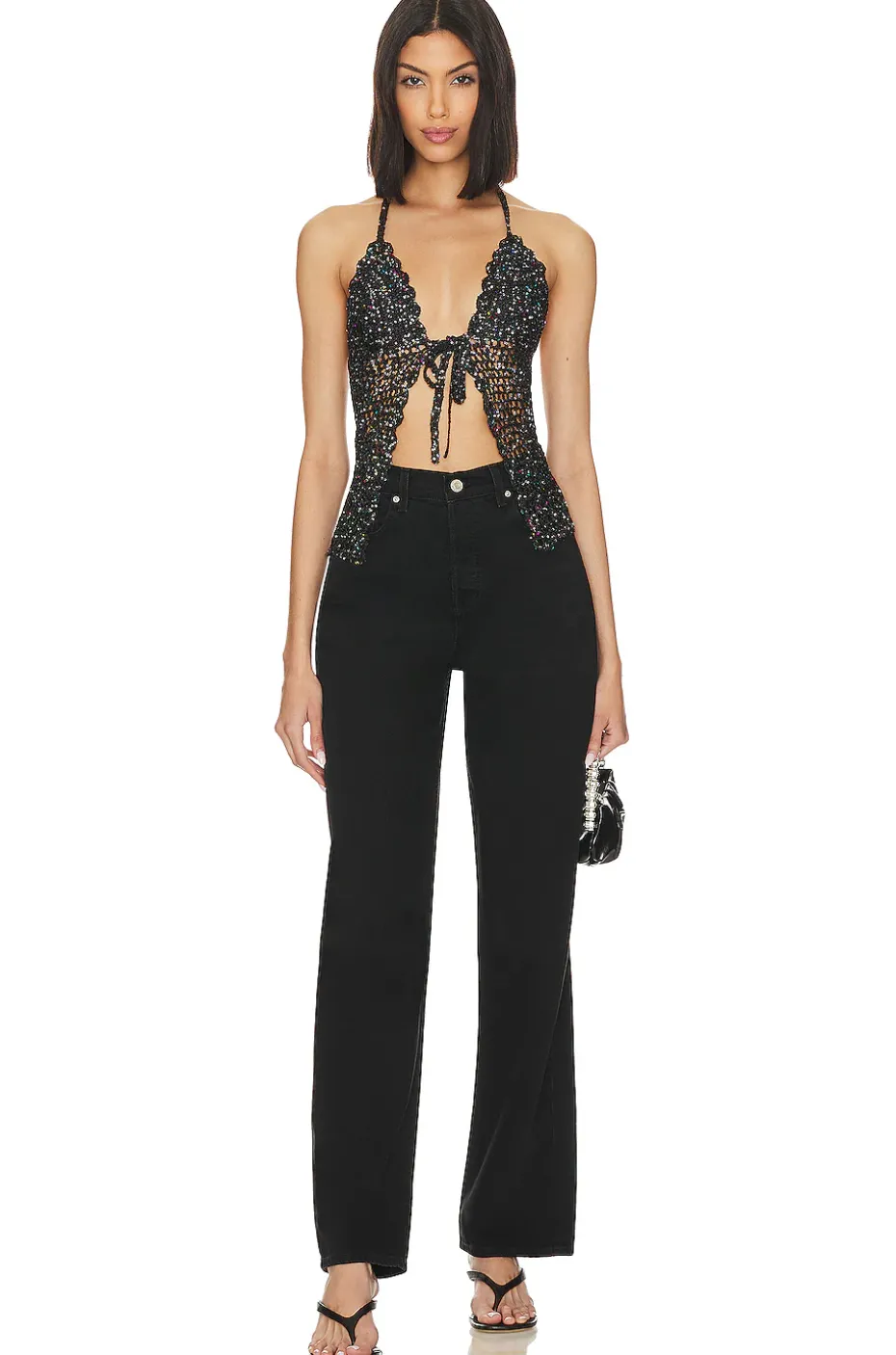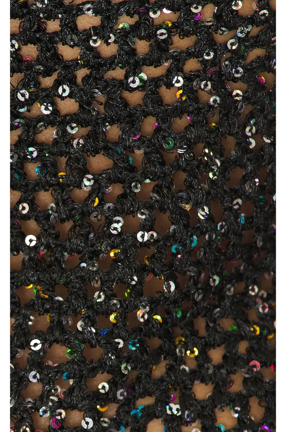- Lightweight open crochet fabric with sequin embellishments throughout