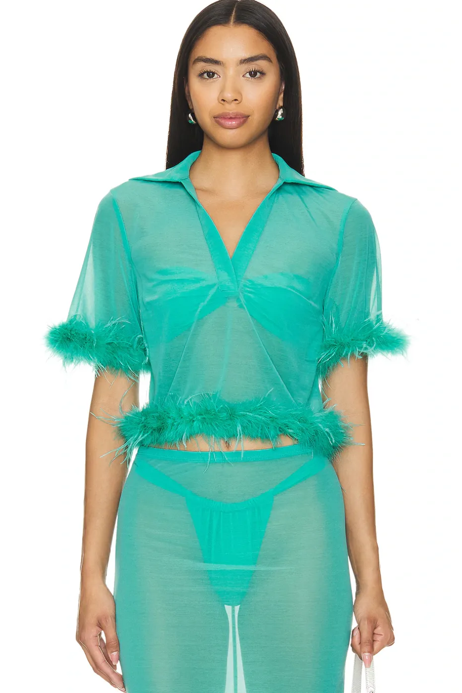 - Garment is intentionally sheer, undergarments will show through.