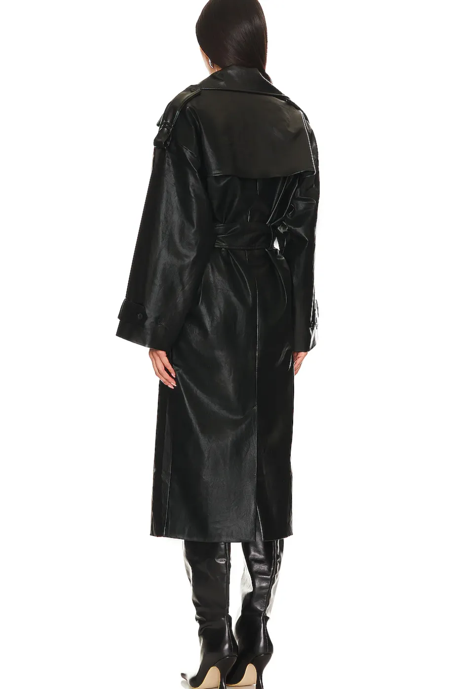 - Make a statement with the Lovers and Friends Barrett Faux Leather Coat in Black. Stand out in this so special duster jacket, featuring a classic longline silhouette and waist tie detail for added shape. The most effortless way to add a cool and classic style to your coats collection, this head-turning coat is sure to be your go-to pick to pair with anything from a casual look to a more formal ‘fit.