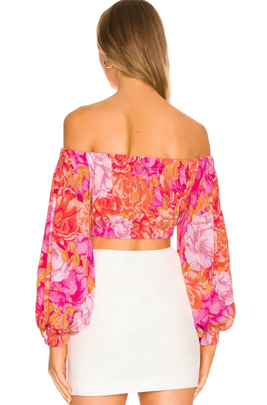 - Off shoulder styling with elastic neckline and hem
