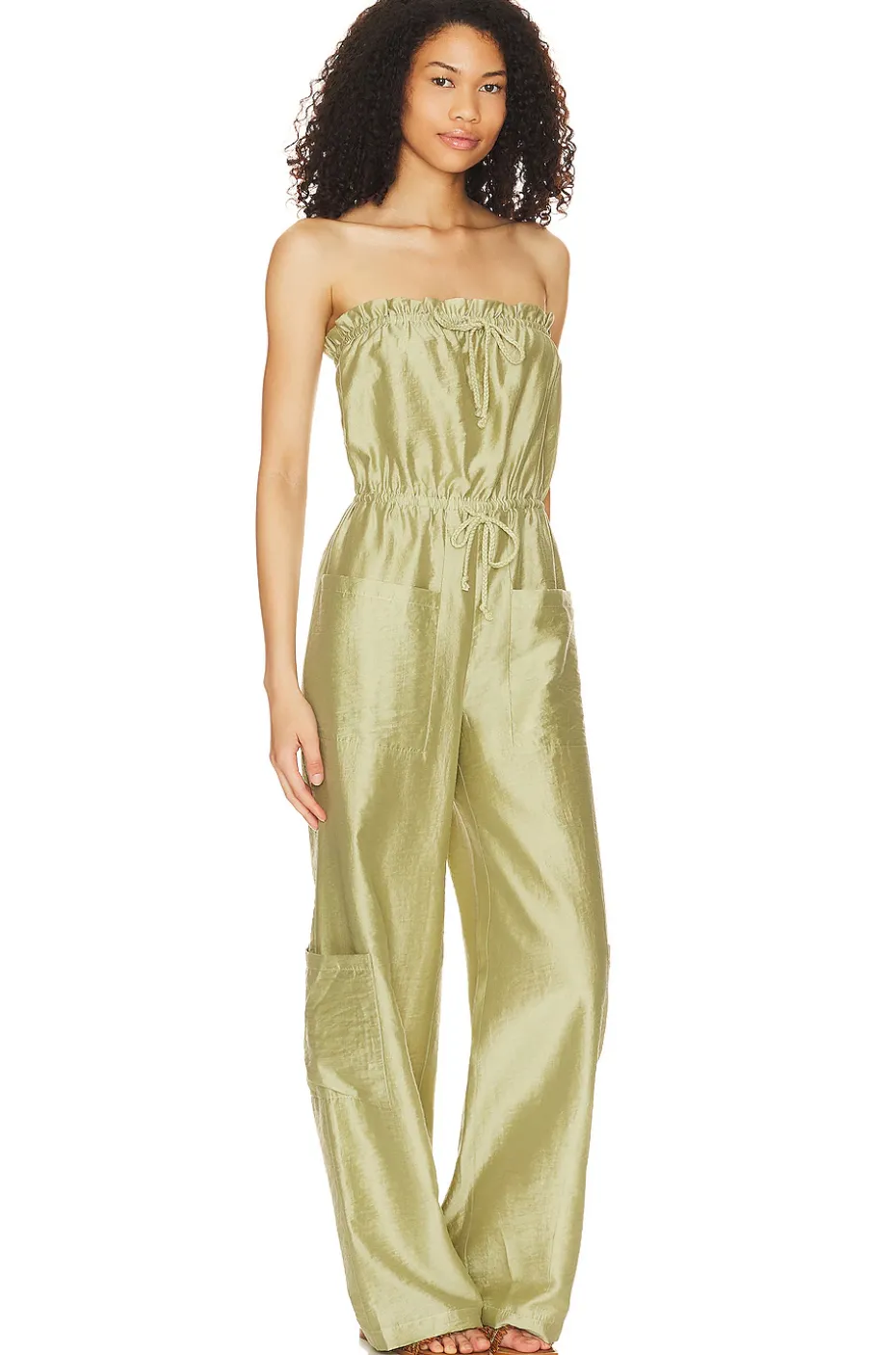 - Drawstring neckline and waist tie