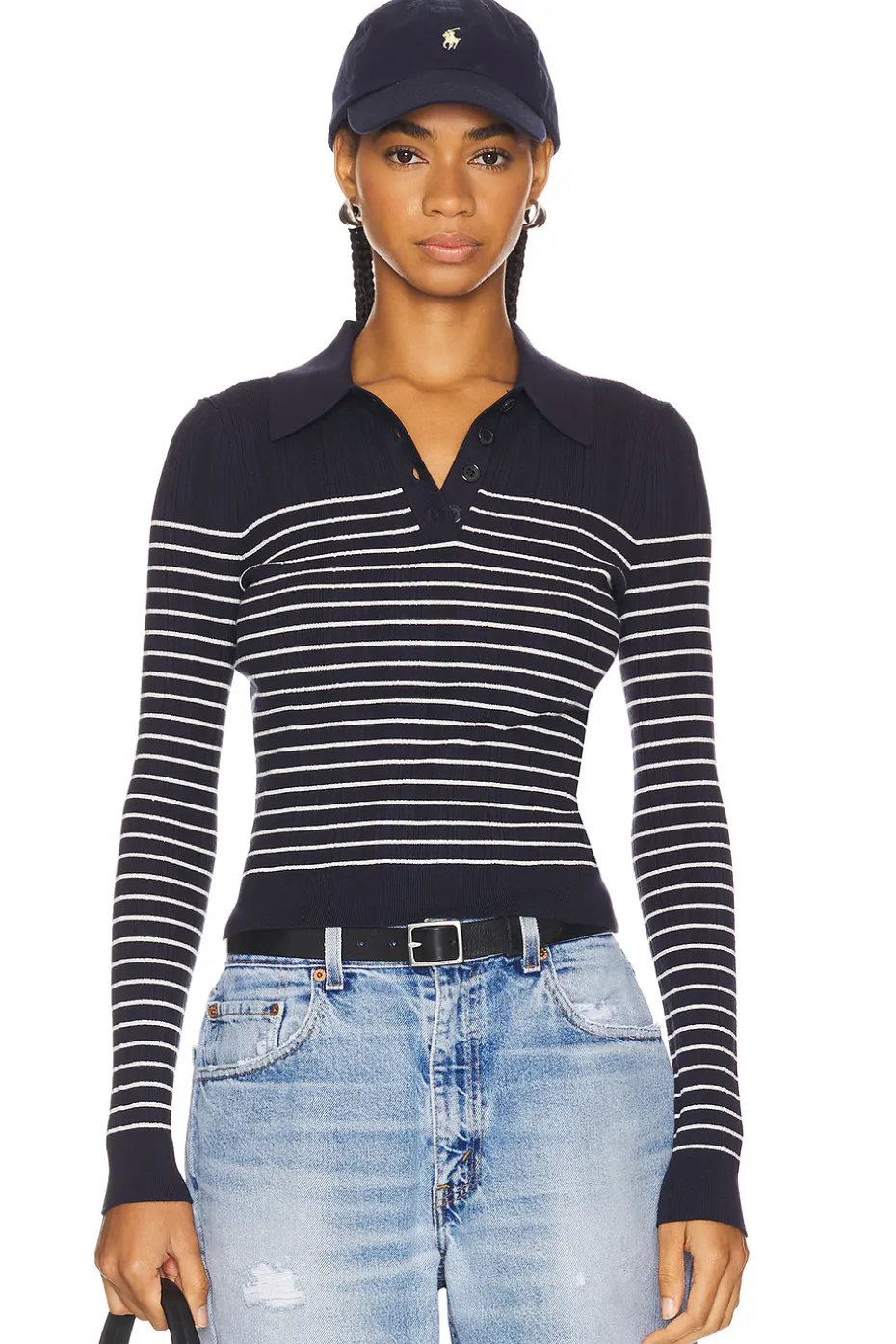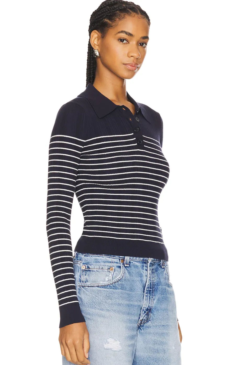 - V-neck with button closure