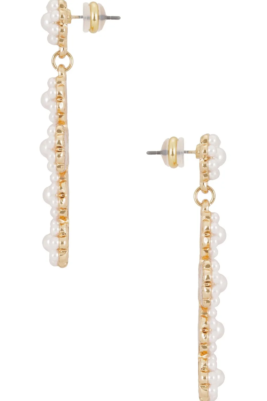 - Faux pearl embellished cross earrings with gold-tone metal hardware