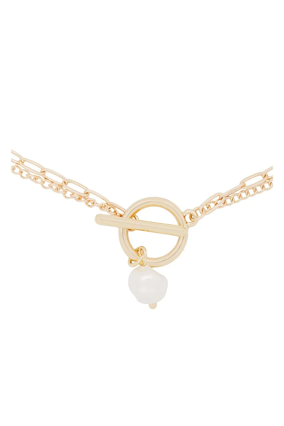 - Gold-plated iron and zinc chain with acrylic pearl