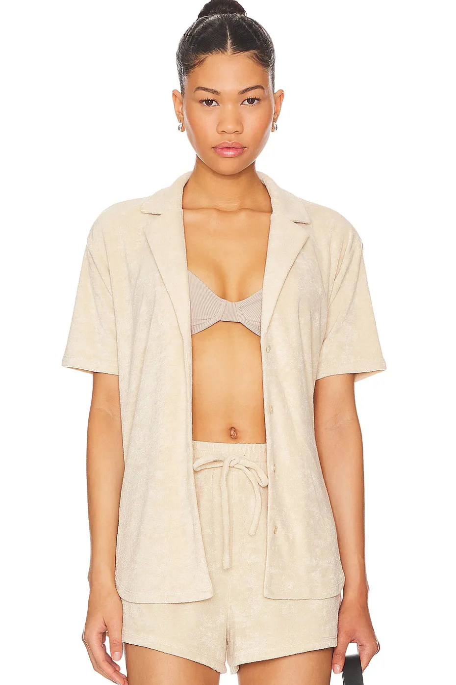 - Front button closure