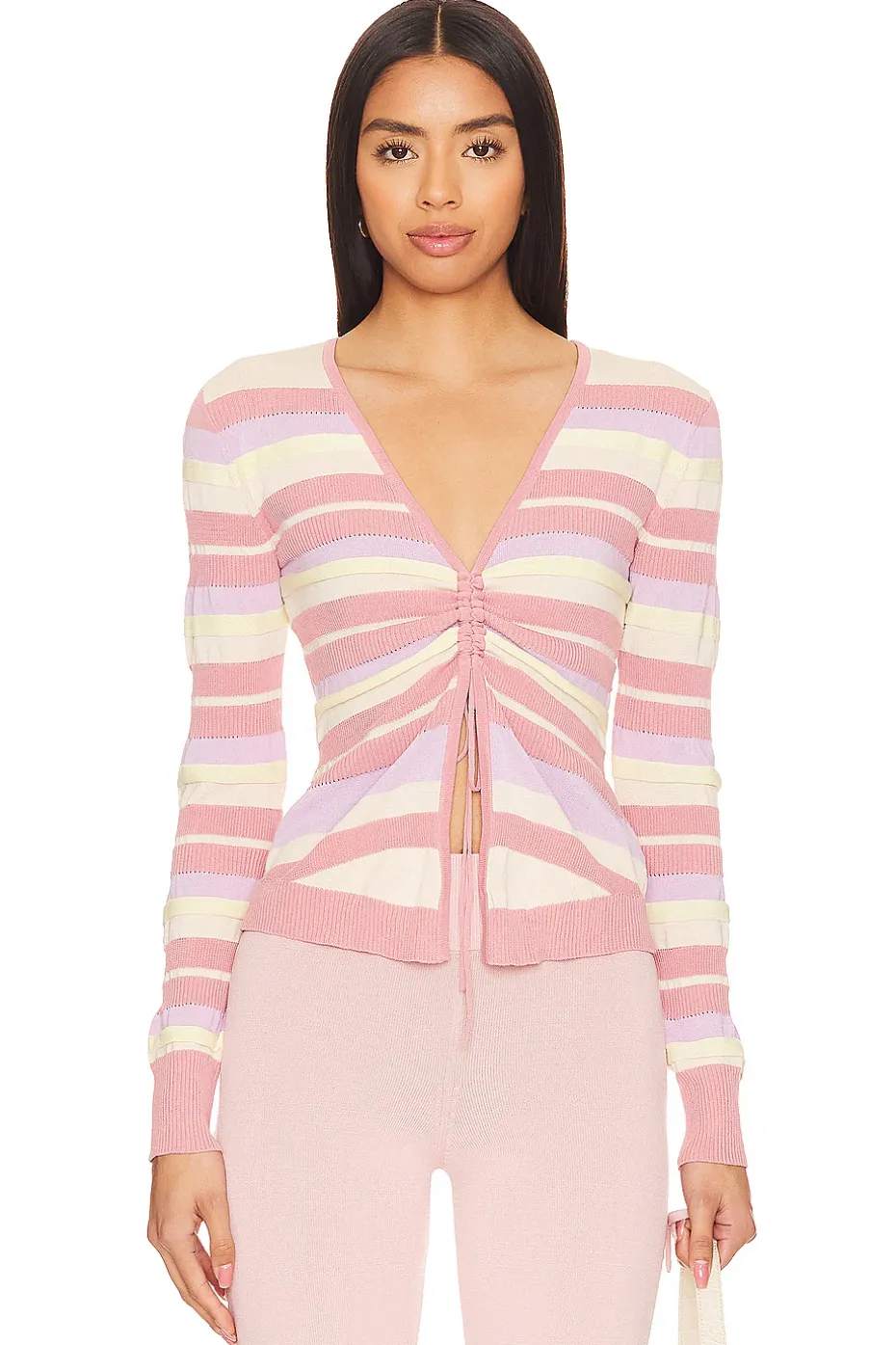 - It’s always the best time to wear a striped sweater! Step into a whirlwind of charm with the Lovers and Friends Kit Striped Sweater in Pink & Lilac Multi. This midweight knit marvel offers a cozy yet stylish embrace. Pair it with a cute tank or wear it solo-it’s your ticket to everyday allure.