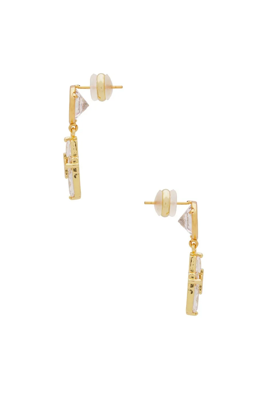 - Gold-tone metal with clear crystal and crystal embellished cross charm