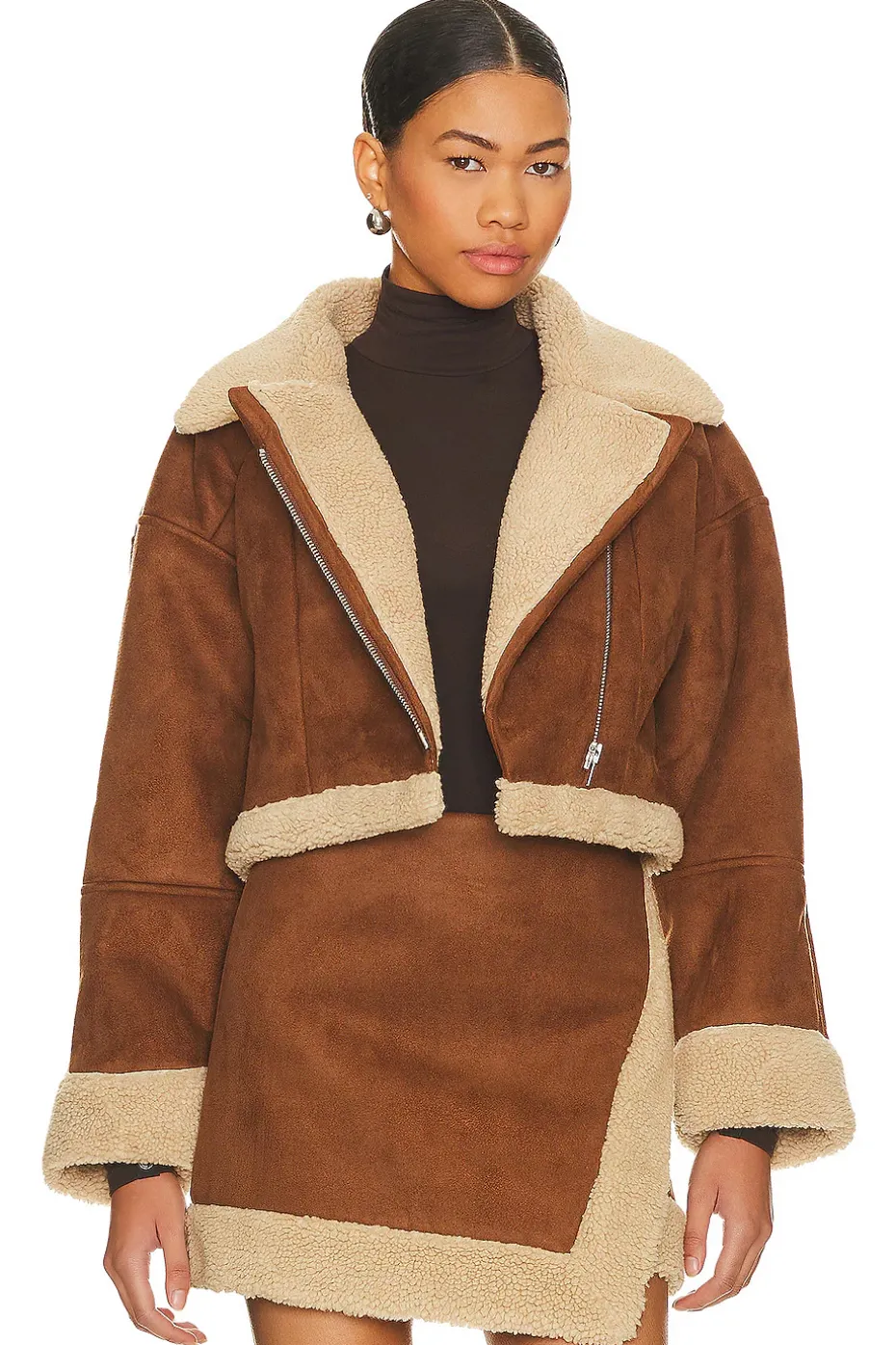 - Faux suede fabric with faux fur lining and trim