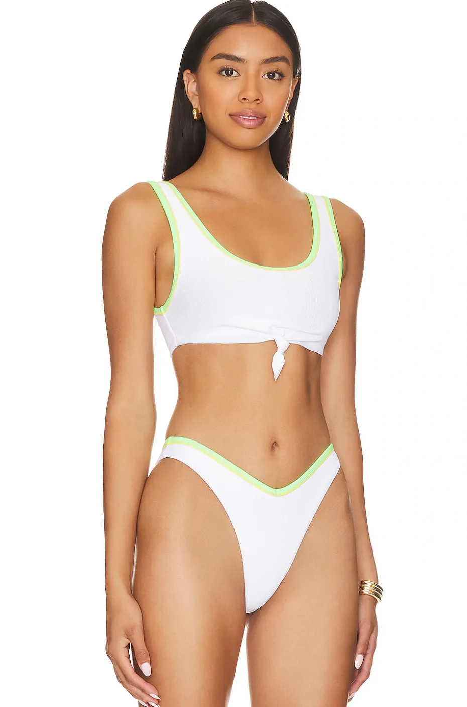 - Ribbed fabric overlay with knot tie accent