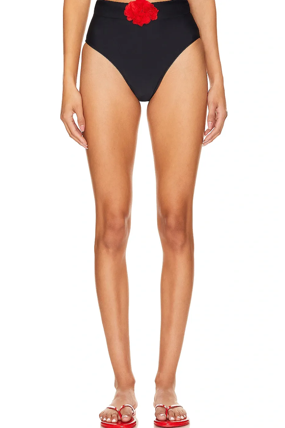 - From Malibu to La Jolla, you’ll be a beach bombshell in the Lovers and Friends Liko High Rise Swim Bottom in Black & Red. Featuring a high waist and medium-cheeky coverage with an oversized, three-dimensional rosette detail at the front. Pair it with the matching top (sold separately) for a complete look.