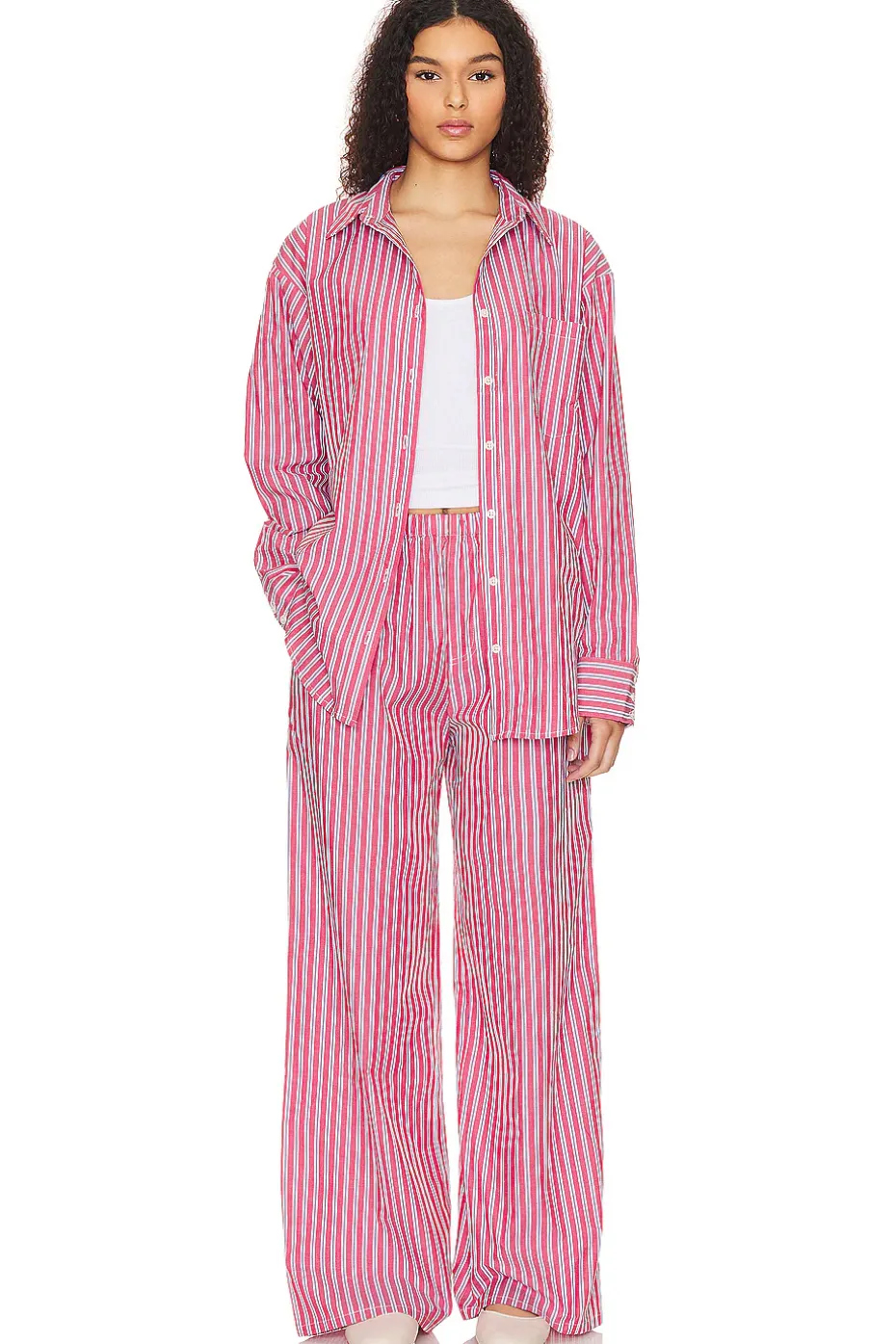 - Experience comfort and style like never before with the Lovers and Friends Maxy Pant in Red & White. Crafted from poplin fabric, it’s perfect for lounging or casual outings. Complete your look with the Maxy Button Up an everyday cool matching set.