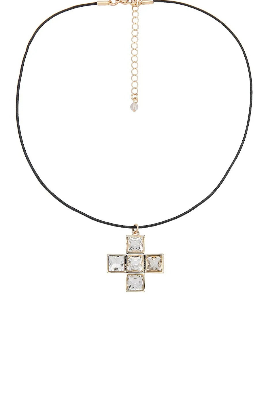 - Waxed rope choker with gold-tone cross pendant with clear crystal embellishments