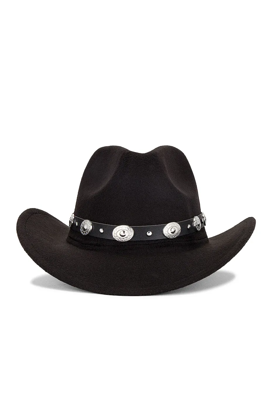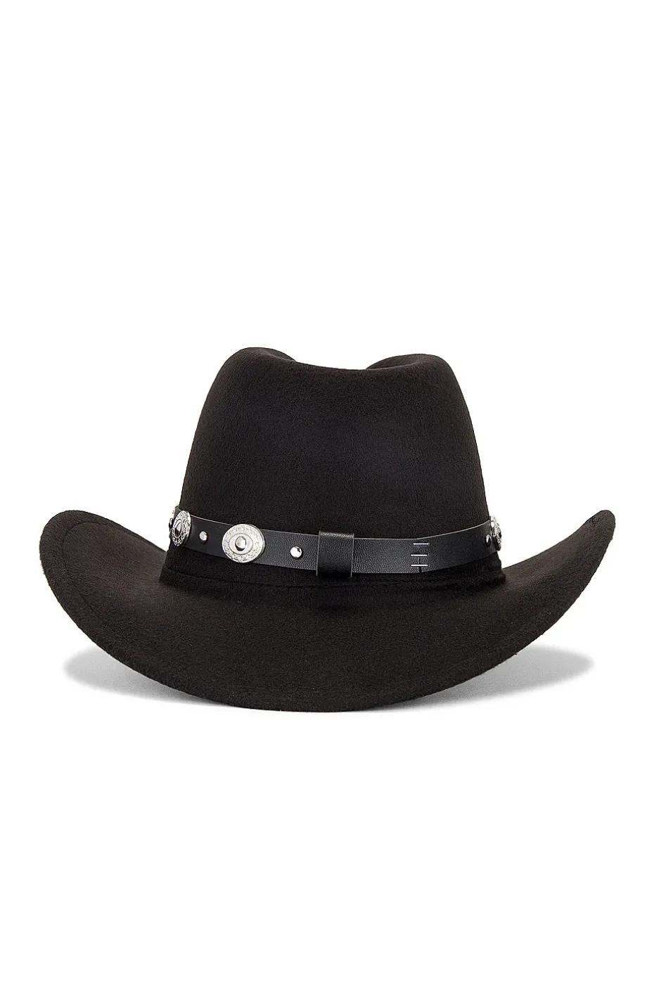- Silver-tone hardware-embellished faux leather band at brim