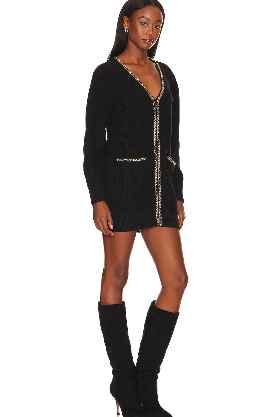 - Gold-tone chain embellished trim and pockets
