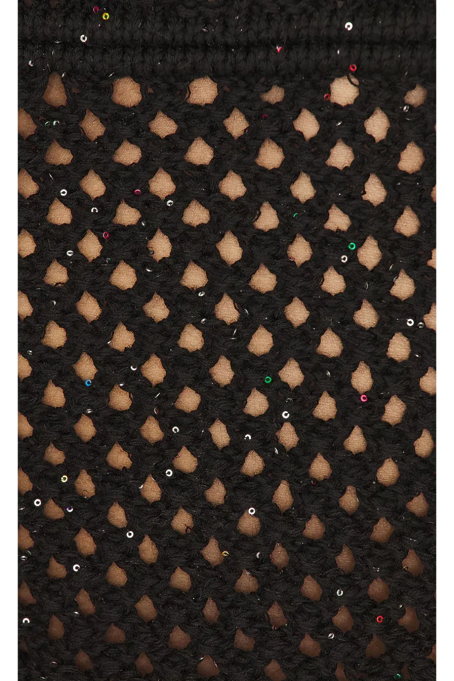 - Open crochet knit fabric with sequin