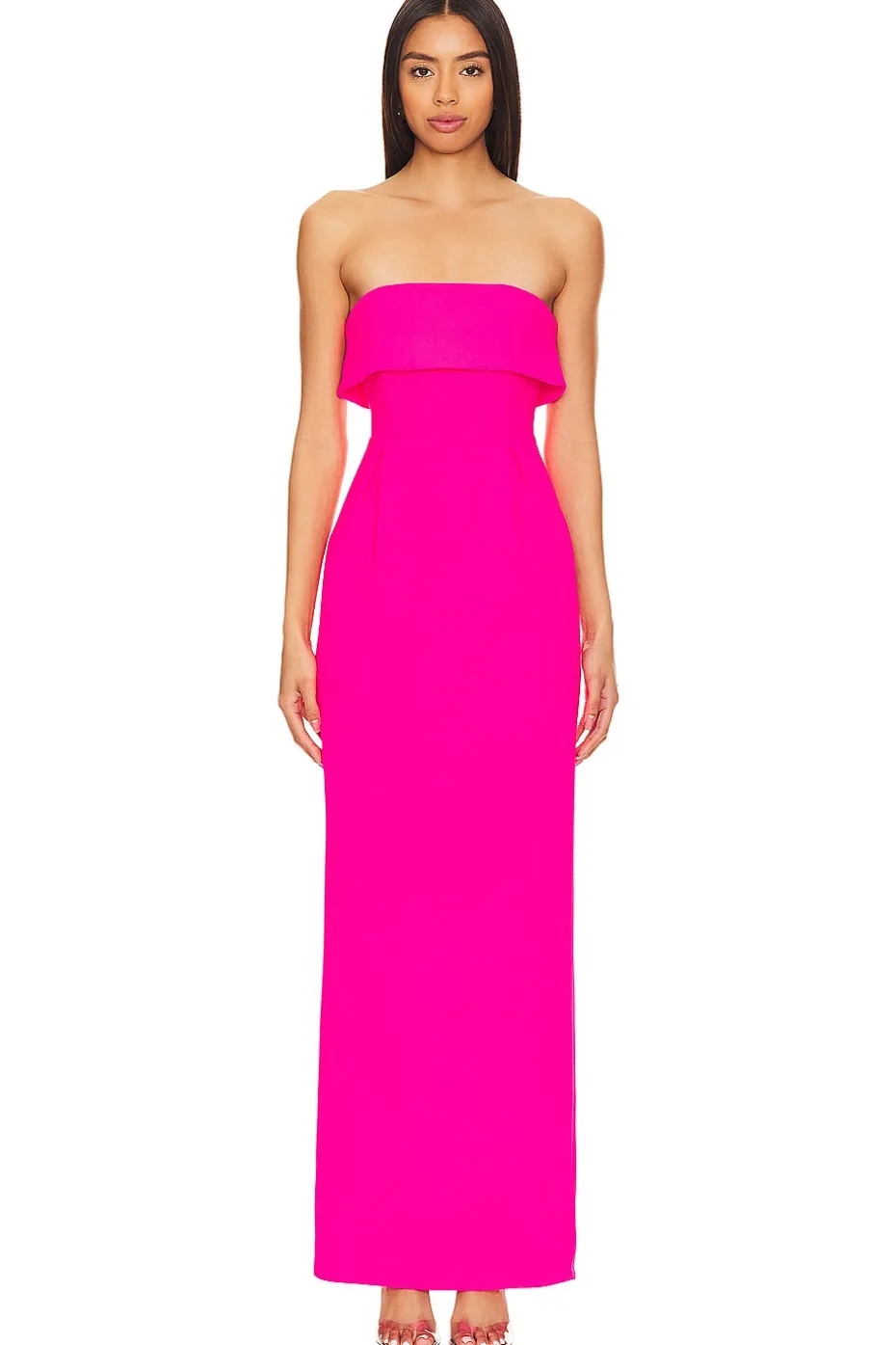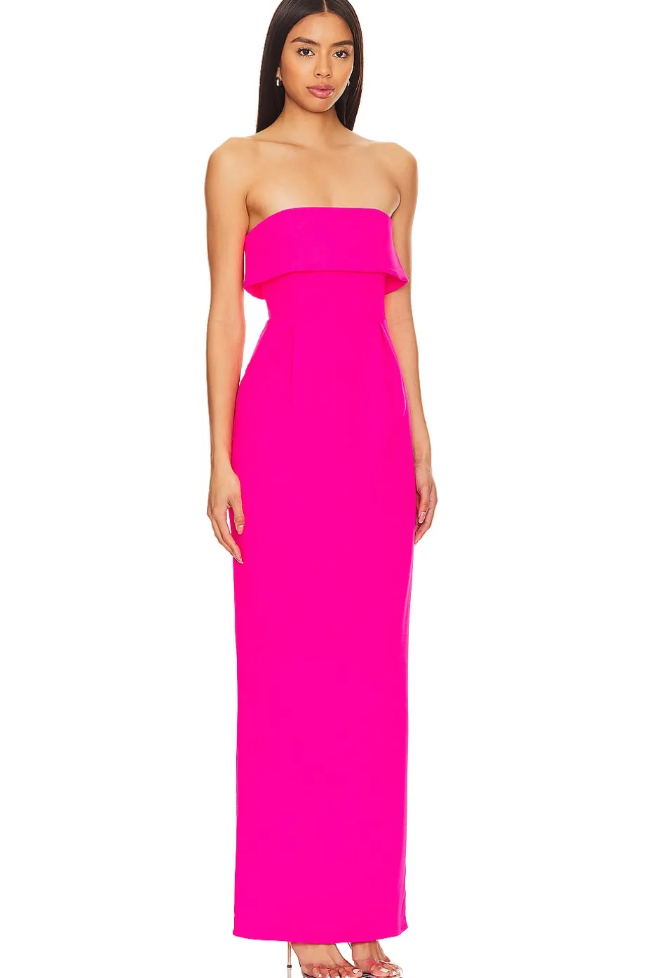 - Unleash your inner diva with Lovers and Friends’ Serena Gown in Electric Pink! This strapless, bodycon beauty features a mesmerizing foldover neckline for extra flair. Be the life of the party, turning heads with this vibrant hue – the perfect showstopper for every celebration!