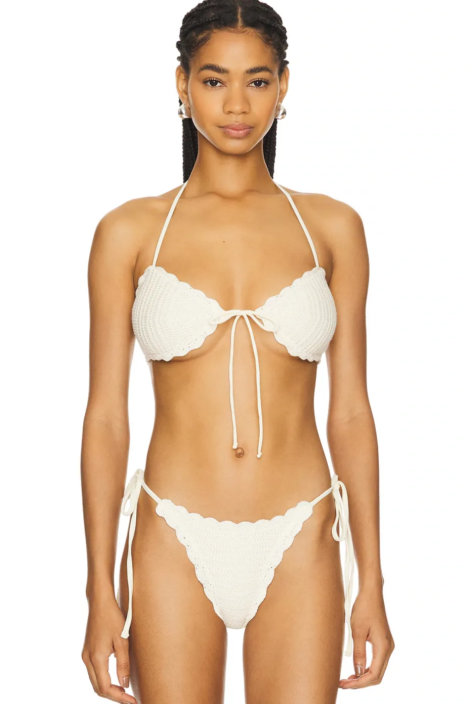 - Halterneck styling with tie closure
