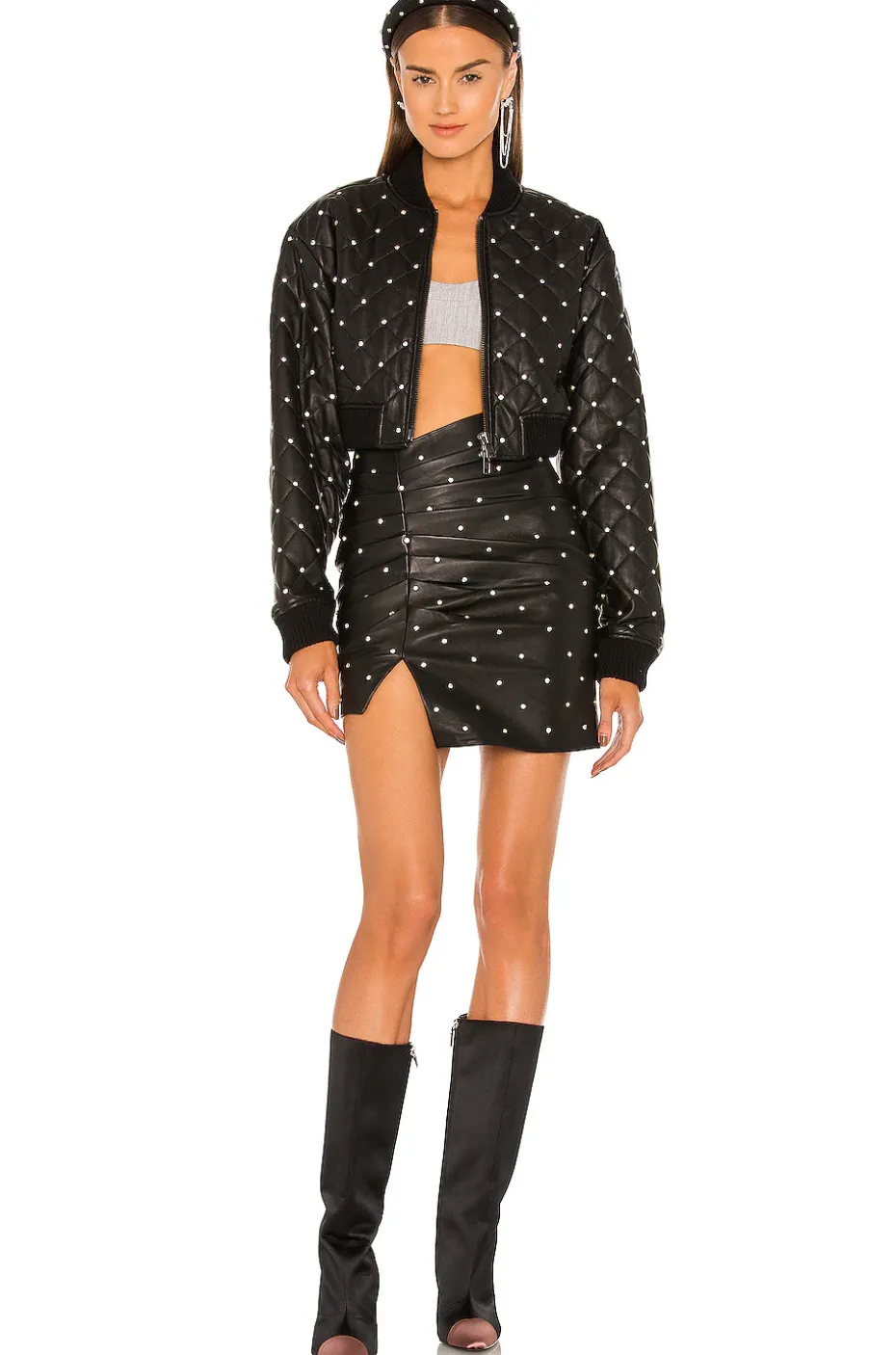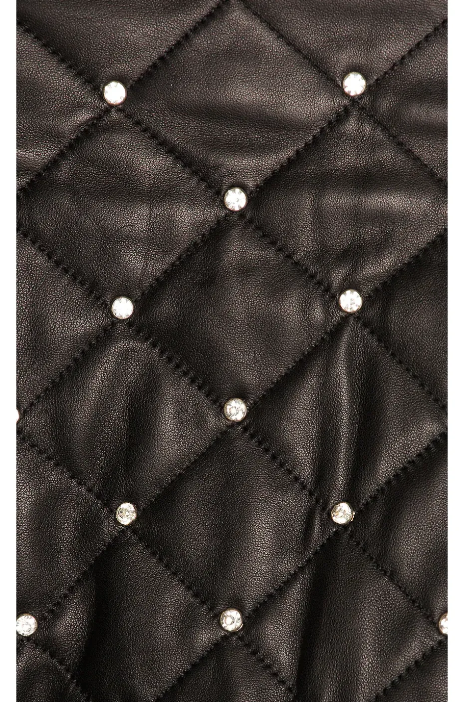 - Faux leather fabric with quilting and crystal embellishments throughout