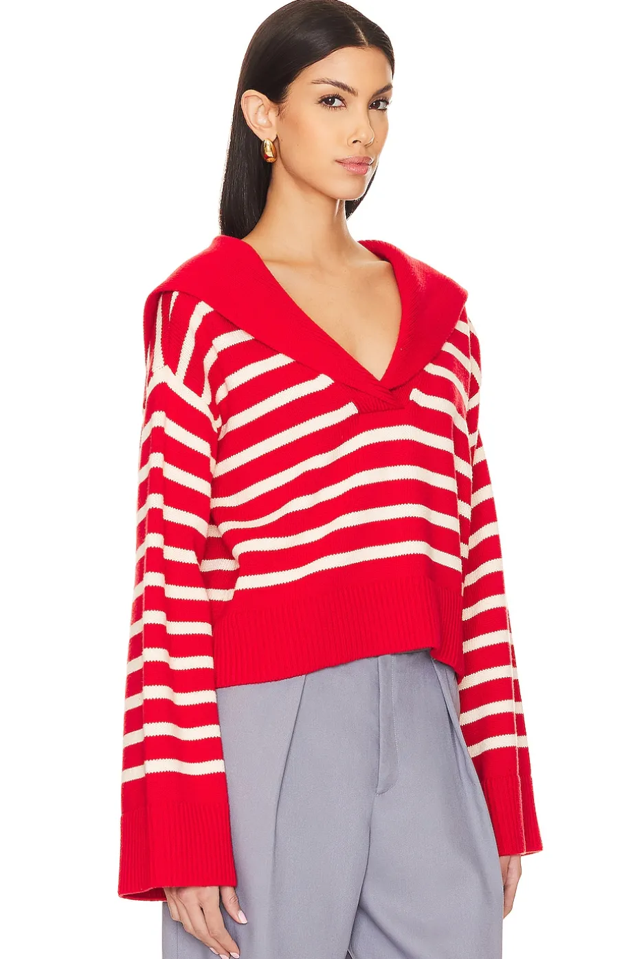 - Embrace the academic-chic vibe with the Lovers and Friends x Anja Dujakovi膰 Niam Striped Sweater! With wide sleeves and a wide neckline, this color pop dazzler adds a playful touch to this cozy knit. Step into style effortlessly.