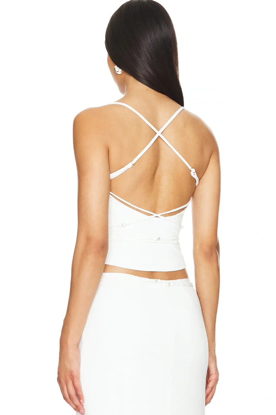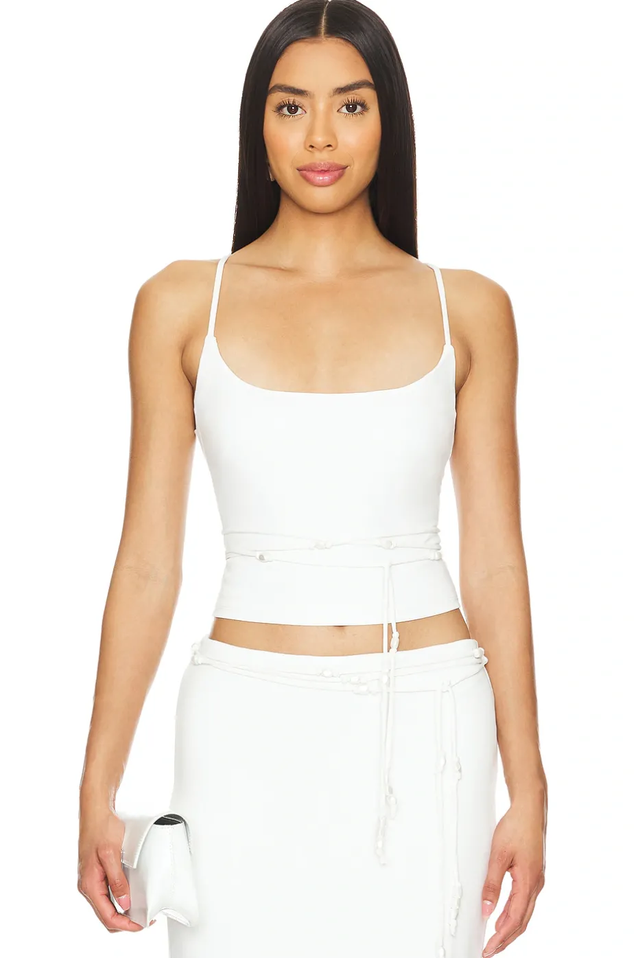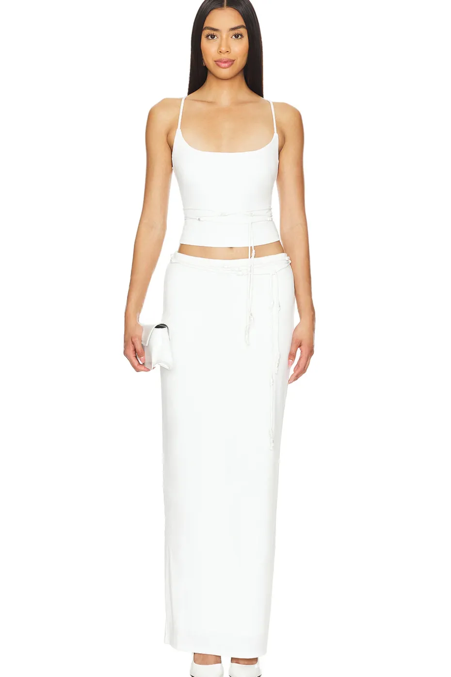 - Back tie closure with bead accents