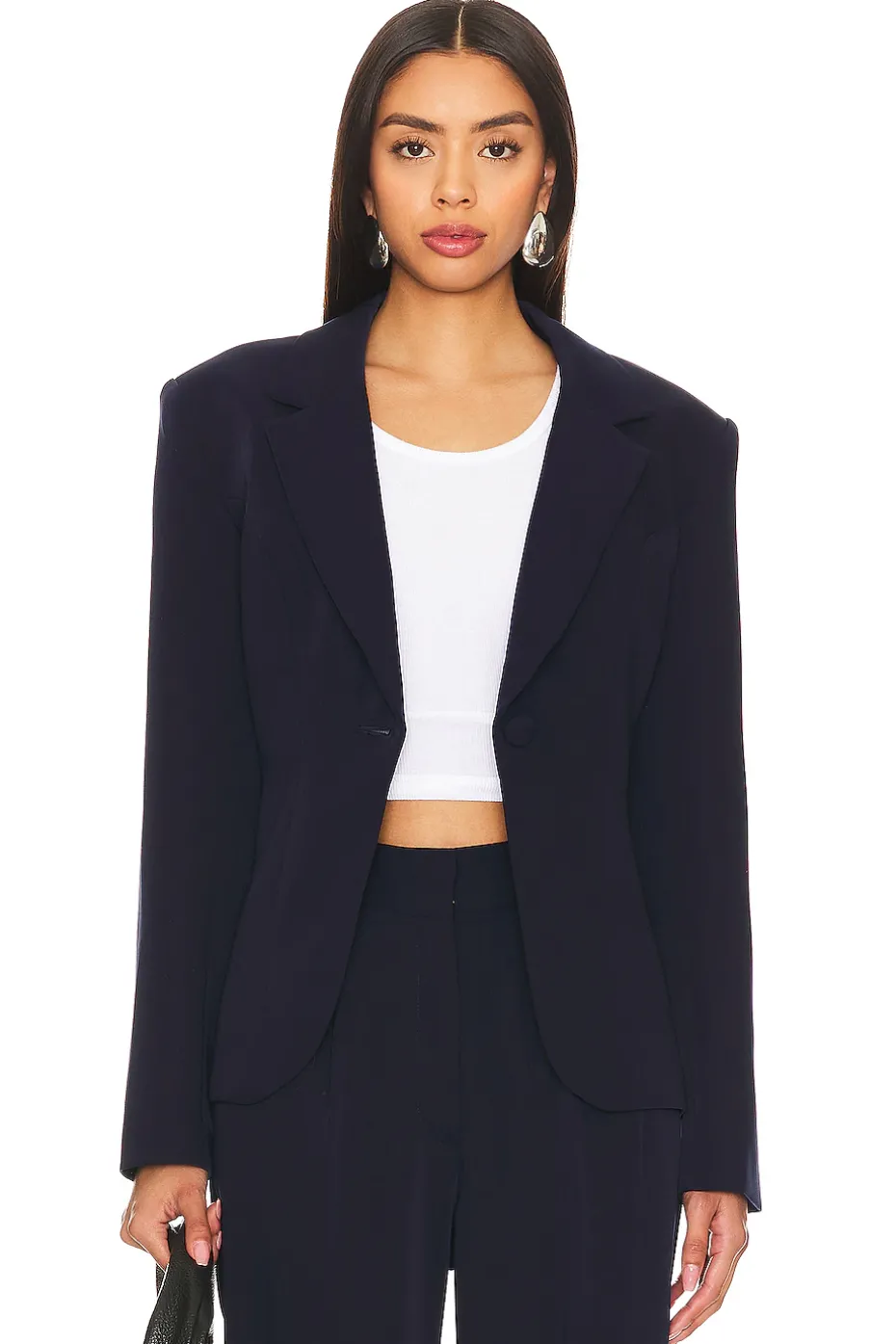 - The Lovers and Friends Nadine Mini Dress in Black offers a stylish twist on the classic blazer. With its singular front button closure, padded shoulders, and satin fabric with a back vent, it exudes an air of career chic. This dress seamlessly combines the elegance of a blazer with a romantic, soft, and feminine twist. Wear it to work or any semi-formal occasion to upgrade your career style.