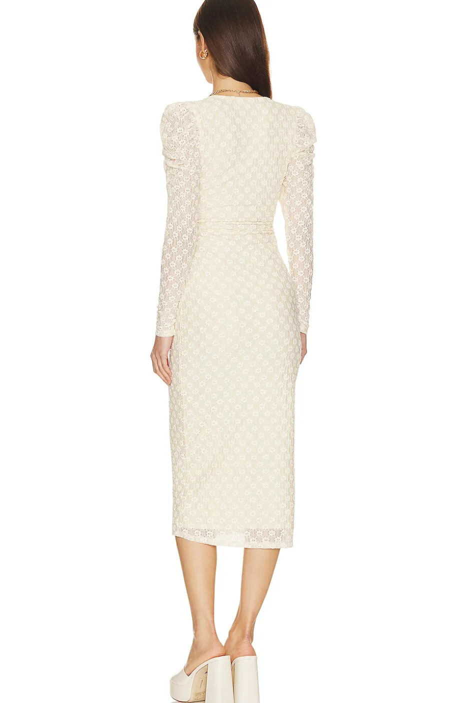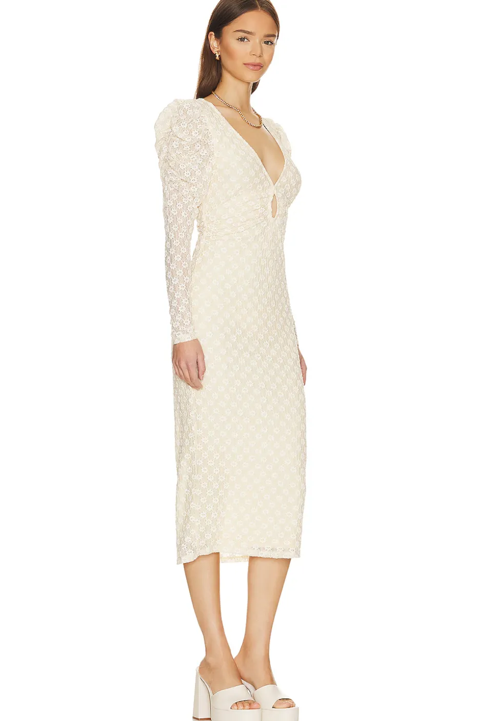 - Lace fabric with subtle puff sleeves